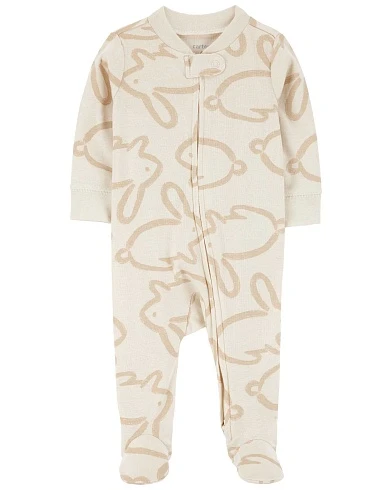 Комбинезон-слип из хлопка Carter’s для мальчиков 0–24 мес — удобная одежда для сна и дома. Нежный молочный фон с крупным бежевым принтом в виде зайчиков выглядит аккуратно и подходит на каждый день. Длинные рукава и закрытые ножки помогают сохранять тепло, а мягкие манжеты комфортно прилегают. Застёжка на кнопках по всей длине облегчает переодевание и смену подгузника ночью, не тревожа малыша. 100% хлопок приятен к телу и подходит для длительного ношения.