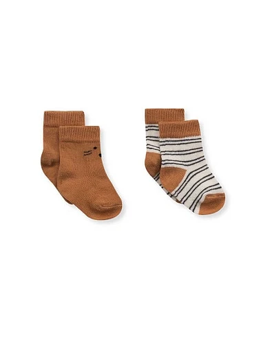 Носки (2 пары) Bebetto — практичные аксессуары для мальчиков 2–5 лет на каждый день. В наборе две модели: однотонные тёплого карамельного оттенка с аккуратной мордочкой и пара в бело-коричневую полоску; обе с мягкой резинкой-манжетой и усиленными носком и пяткой. Материал: хлопок. Носки удобно сидят, не стесняют движений в садике, дома и на прогулке, помогают сохранять комфорт в обуви и легко сочетаются с базовым гардеробом.