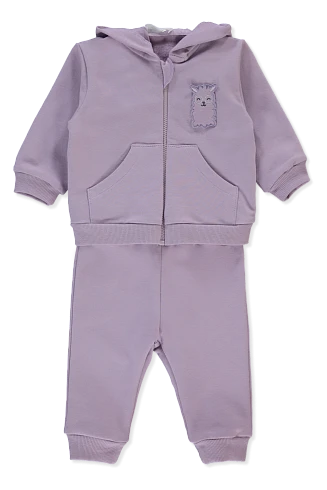 Комплект из двух предметов Bebetto для девочек 2–5 лет — удобный вариант на каждый день: толстовка на молнии с капюшоном и накладными карманами, а также брюки с мягкими манжетами. Нежный лавандовый цвет и аккуратная нашивка с милым зверьком делают образ спокойным и нарядным. Материал 95% хлопок 5% эластан приятен к телу и не сковывает движения, подходит для прогулок, детского сада и игр дома. Молния облегчает переодевание, а манжеты помогают сохранять тепло.